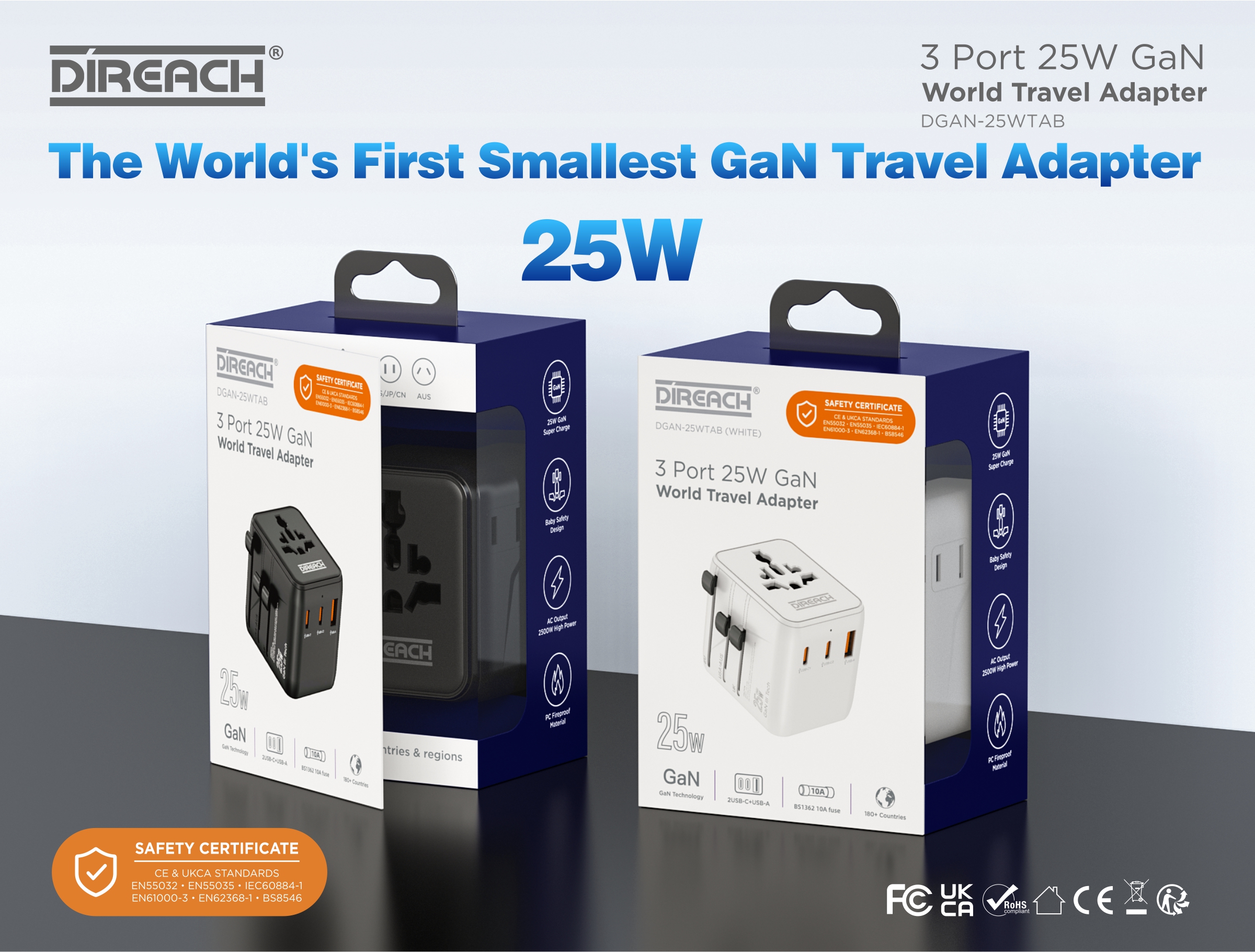 DIREACH 3 Port 三輸出 25W GaN 環球旅行充電器